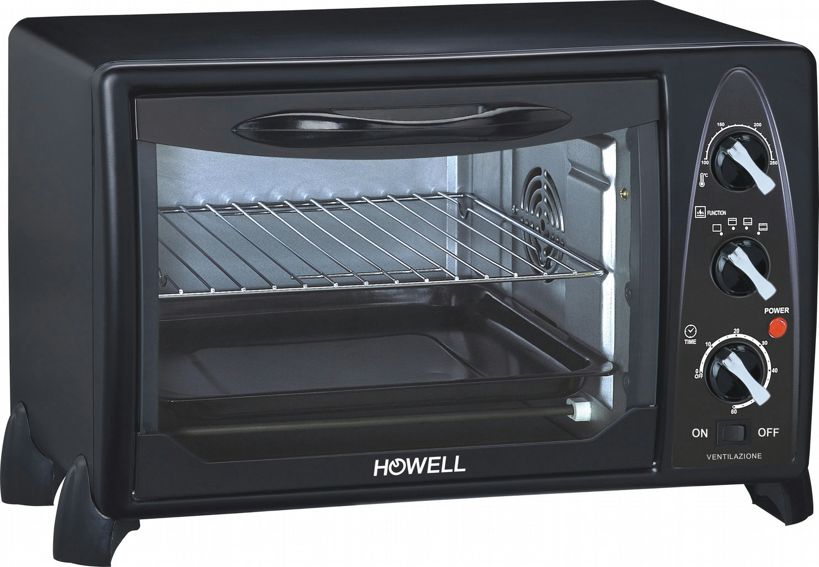 Howell HO.HFV2412. Oven type: Electric oven, Total oven(s) interior capacity: 24 L, Total oven power: 1400 W. Colour of product: Black, Control type: Rotary, Control position: Front. Timer type: Mechanical. Width: 491 mm, Depth: 345 mm, Height: 306 mm