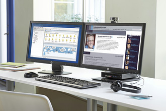 Make the most of small work spaces with an HP IWC Desktop Mini/Thin Client that lets you create a compact desktop solution by combining a display[1] with your choice of platform[1] and giving you convenient front access to all of its inputs.