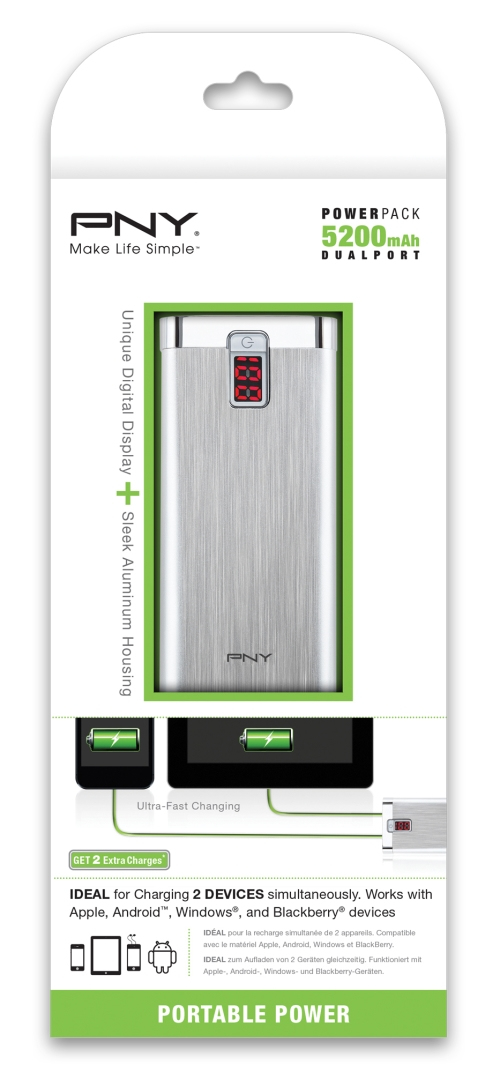 Never worry about losing power for your mobile device while you’re on the move. PNY’s PowerPacks are rechargeable battery banks designed to provide you power wherever or whenever you need it for any USB powered device. Ideal for charging your Apple, Android, Windows, and BlackBerry devices. Available with single or dual-port charging outputs to stay fully charged. Power on the go…