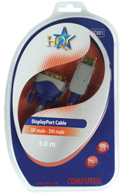 DisplayPort 19pin male to DVI-D 24+1pin male monitor cable with ferrite cores. DisplayPort transmits digital information only, for example between a computer and an LCD monitor.