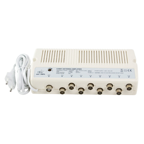 8-Way Antenna Amplifier, 16 dB, 0 - 10 dB, 40 - 862 MHz, White