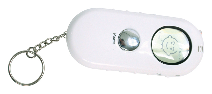 Alcohol tester with LCD display to immediately get an indication of the alcohol level in someone's system with respect to driving a vehicle: safe, caution or danger. Easy to operate with a single touch. It is equipped with a key chain and a LED light that can be used as a torch.
