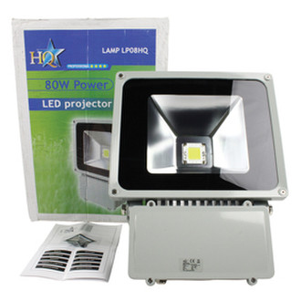 Single chip multi LED 80 W IP65 outdoor construction lamp. The generated brightness of this lamp can be compared to that of a 150 W sodium lamp. The used LEDs have a long lifetime of at least 30.000 hours which makes this lamp suitable for continuous use.