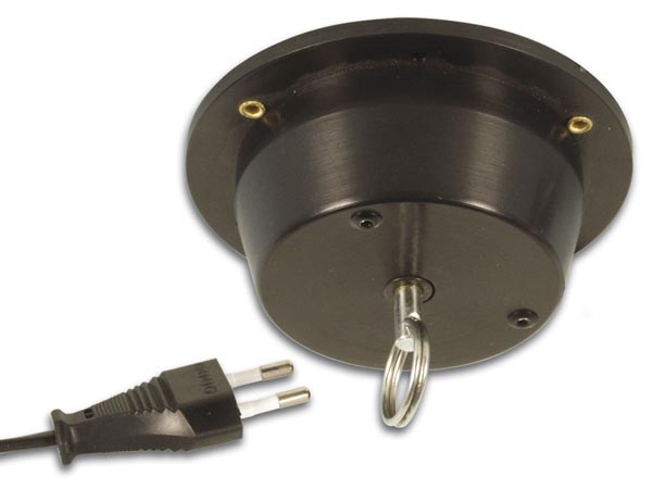 - for mirror balls up to 2kg. Power cable with Euro plug. Plastic cover. - comes with: mounting accessories (screws and plugs) - speed: 5 rpm - power supply: 230Vac - dimensions: 30 x Ø100mm - weight: 0.30kg