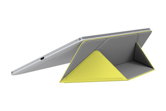 The Magic cover is a magnetic attachment cover that can be attached to the front or back of the tablet and the cover can fold into two stand positions, the upright position for viewing and low or lying position for typing.