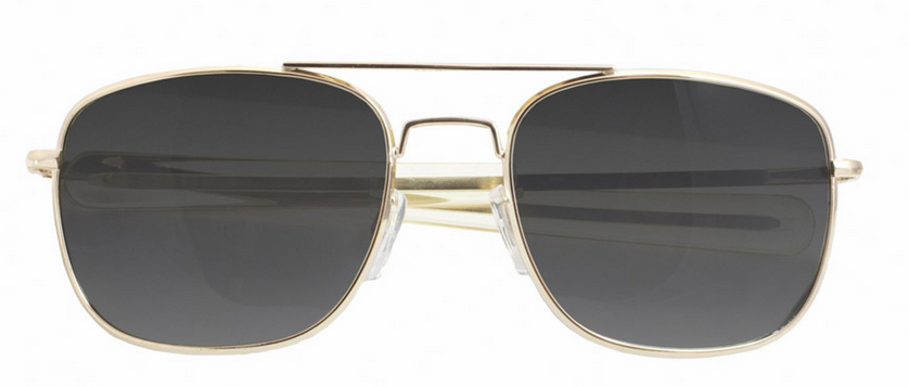 The HUMVEE HMV-57B-GOLD Military Sunglasses feature grey lenses and gold frames. These glasses have a bayonet style. 57-millimeter. HUMVEE has become the backbone of U.S. forces around the world. Our HUMVEE gear is modeled after equipment that is depended on in the rigors of battle. These products are designed to survive the most demanding situations while still remaining simple and easy to use.