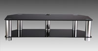 - 2 Shelf Black Glass Plasma Stand - 10mm Top shelf, 6mm lower shelf - Cable Management
