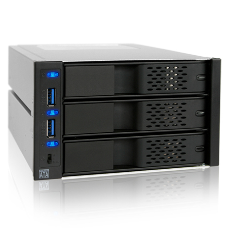 The MB973SP-2B is designed to maximize space use by allowing up to 3 x 3.5” SATA 6Gbps hard drives, while only consuming two 5.25” device bays. The FlexCage also only requires two 4-pin power ports (or two 15-pin power ports with included 4 pin to 15 pin adapter cables), to power up to three 3.5” hard drives. The FlexCage is equipped with our renowned tray-less technology – no screws or tools are necessary to insert or eject the drives, making hot swapping a completely hassle free experience.