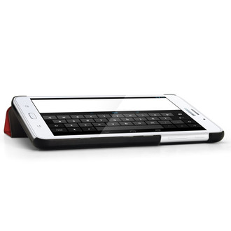 The back of the case is made from hard plastic which provides secure protection and saves your device from any knocks or scratches. The magnetic fold-out stand is fully integrated into the case's front cover and offers optimum viewing and typing positions. We have also created extra length in the fold tab to increase leverage. This will create minimum bounce when the case is being used.