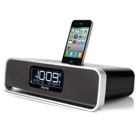 The iA91 is a dual alarm clock radio for iPhone and iPod that lets you charge your iPhone or iPod and lets you wake and sleep to either one, to a custom playlist, or to AM/FM radio. A time sync button syncs the clock to your iPhone (which is always current via cell phone towers) to set the time quickly.