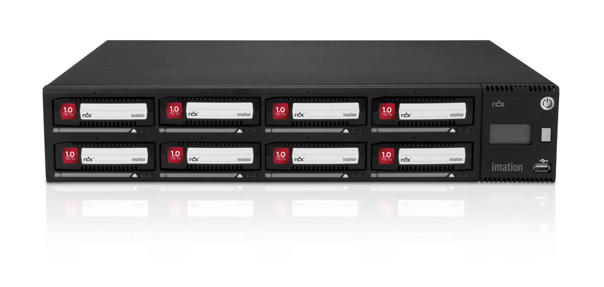 The multiple-bay RDX A8 networked storage array enables SMBs to access up to 8 TB of data simultaneously (on eight RDX removable disk cartridges, based on 1 TB cartridges), and can operate as either a backup target or online storage. Leveraging its ability to mix different capacity RDX media (160 GB to 1 TB) in a single appliance, the RDX A8 provides “pay-as-you-grow” storage scalability and investment protection.