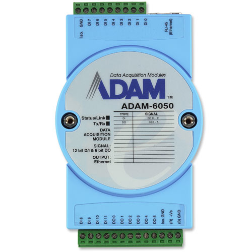 The ADAM-6000 Ethernet-enabled data acquisition and control module works as an Ethernet I/O data processing center. This product is not only a standard I/O, but also an intelligent system designed with local control functions and a MODBUS/TCP protocol.