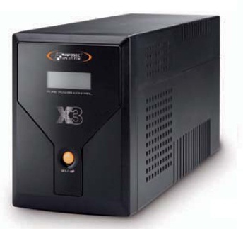Infosec X3, 2000 VA. Output power capacity: 2000 VA, Output power: 1200 W, Power supply input frequency: 50/60. Typical backup time at full load: 50 min. Colour of product: Black. Noise level: 45 dB. Certification: EN 62040-2, EN 62040-1-1