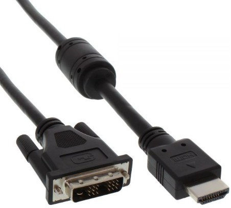 HDMI-DVI Cable 19 Pin male to 18+1 male + ferrite choke black 1m HDMI is the newest standard in the area of Home cinema, multimedia and PC entertainment. This interface is to transfer pictures, data and sound digitally over one medium. Besides, HDMI is with DVI compatible what allows, e.g., the direct transfer von dvd-player signals to the screens of a TFT (only video-signals). HDMI is a very fast interface with up to 5Gbps(!).