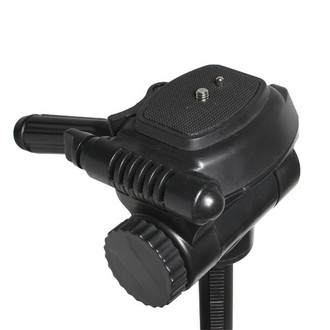 - The aluminum construction tripod ,with black plastic components make itself lightweight.The brace and non-slip feet keep it securely in place.