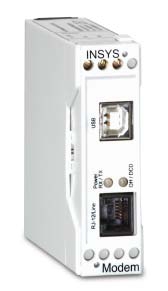 The INSYS Modem 56k small USB is a very slim analogue modem for industrial use and mounting on DIN rails.