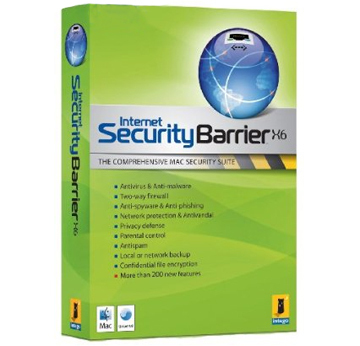 Internet Security Barrier X6, the latest version of Intego's security suite, includes more than 200 new features. With multiple threat-detection techniques, improved methods of detection, and a full range of defensive functions for malware and network protection, together with parental control, backup and antispam features, Internet Security Barrier X6 protects Macs from all known malware, network-based threats, and the many other security issues that affect Mac OS X.