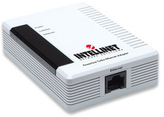 The Intellinet network solutions PowerLine Turbo Ethernet Adapter allows you to create a high-speed network for the computers in your home or office by simply plugging the adapters into any electrical outlet. You immediately create a network using the existing AC power lines and can extend your home network into areas a wireless signal cannot reach.