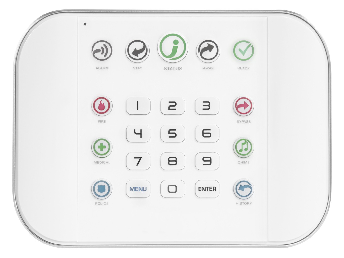 LED keypad, Wi-Fi b/g, 10/100 Ethernet, 64 zones, 4 partitions, 256 users, 20 keyfobs