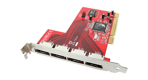 The IOGEAR 4-Port RAID 5 eSATA 1.5Gbps PCI Card adds 4 external eSATA ports to your desktop computer. It is great for users who want to add SATA connectivity to their computers but do not want to buy a whole new computer. Devices commonly used with this host adapter are next generation hard drives, DVD drives such as Blu-ray optical drives, HD-DVD drives and peronsal media drives. The low profile design of this adapter makes it ideal for computers that have limited internal expansion space.