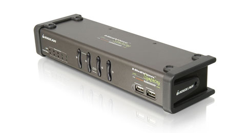- Controls four computers with a single VGA monitor, USB keyboard and mouse