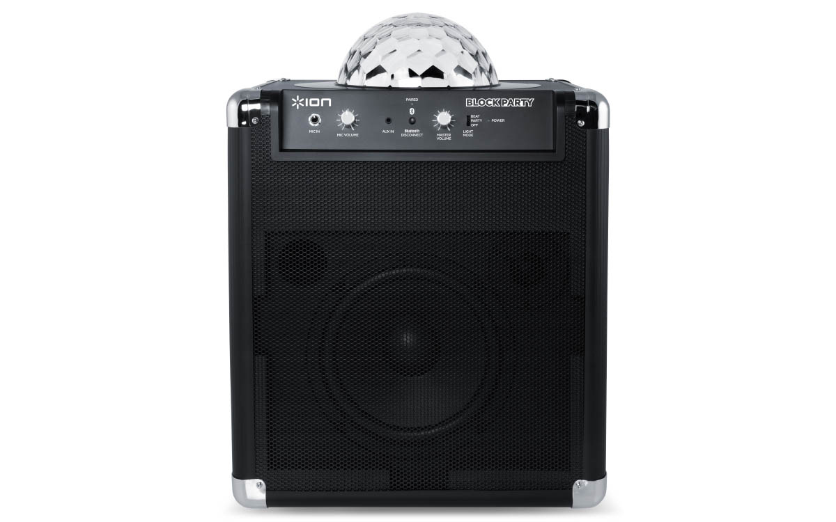 Block Party creates an instant dance party anywhere. Stream your music wirelessly and watch Block Party's built-in LED lighting automatically burst into action, pumping and pulsating in time with your music while changing colors and patterns. These dazzling and colorful light patterns are projected onto ceilings and walls, giving you an instant party atmosphere, while its 50-Watt speaker fills the room with thumping bass and dance-club energy.