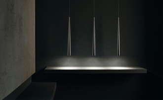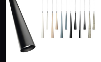 The slow process of transformation of a tubular metal section to a slim and tapered cone, seems to attribute to the light-source the act of freezing the beam of light into a solid object. The accurate perfection of the surface, the specific weight and substance of the material, in contrast with the apparent fragility of the product, testify the value of the workmanship, all made in Italy. Last but not least, the varying color options, give the product an elegant and contemporary character.