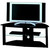 German designer extra wide corner TV stand. Black glass shaped top and 2 shelves designed for satellite and DVD, complemented by black metal frame. Cable management to rear.