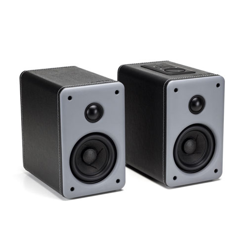 The DS4 wireless bookshelf speakers offer a sleek, contemporary design with an incredible acoustic performance. Wrapped in a white or black stitched leatherette, these speakers accent any home décor.