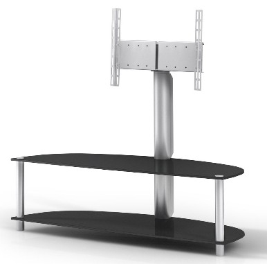 - Universal flat-screen mounting system with swivel mechanism - High-gloss and scratch-resistant black glass - Polished aluminium columns - Cable management