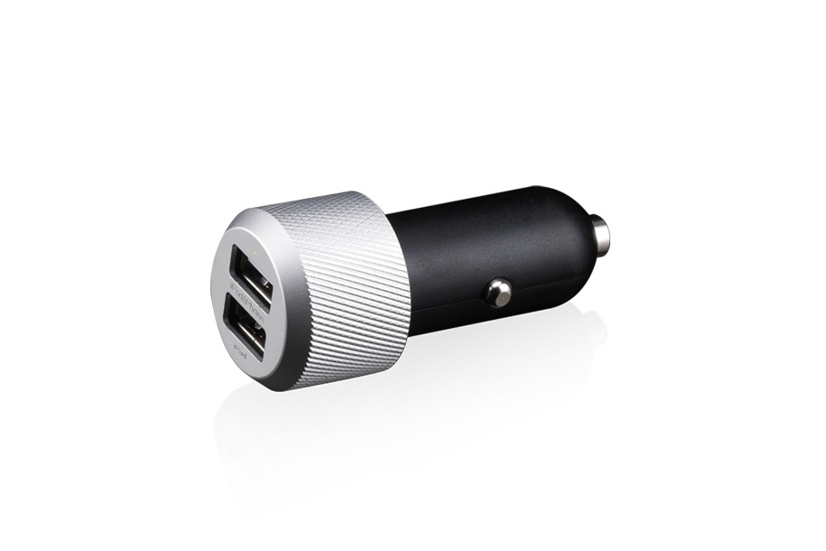 Highway Pro Twin Slot In-car Charger for iPhone, iPad and USB Devices, Silver