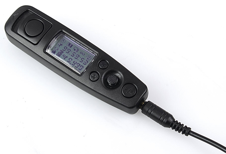 Normal shutter release works without battery. Delay start is supported. Timer and interval time ranges from 1 second to 99 hours, 59 minutes, 59 seconds. Exposure numbers range from 1 to 9.999. 4-way-operation button. All buttons can be locked to prevent unintentional operation. Beep sound can be switched off. Low battery warning.