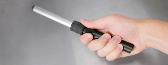 Stored inside the handle is a 600-grit, diamond-coated oval shaft. This is the perfect grit for restoring an edge that is in generally good shape, but is just dull. Simply unscrew the shaft from the handle interior, turn it around, and screw it on to the other end of the handle. Now the Ultra-Tek is a comfortable 9-in. length, ideal for both sharpening and realigning the edge of your Kershaw blade. To sharpen, hold the blade edge against the diamond-coated shaft at about a 20-degree angle and swipe the blade, from heel to tip, along the sharpening shaft. Do this an even number of times on both sides of the blade. Soon, your blade will be restored to it's Kershaw shaving sharp edge. It's a good idea to keep the Ultra-Tek close at hand so you can touch up the blade from time to time. If you don't let it get terribly dull, it will take no time at all to maintain your edge.