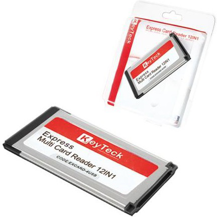 Keyteck EXC-CR. Compatible memory cards: Memory Stick (MS), miniSD, MMC, MS Duo, MS PRO, SD, xD. Interface type: ExpressCard. Windows operating systems supported: Windows 2000, Windows Vista Home Premium, Windows XP Home, Windows XP Home x64. Package type: Blister