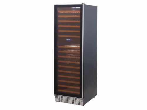 Kibernetik V168. Case design: Freestanding, Housing colour: Stainless steel, Door colour: Black. Temperature range (zone 1): 3 - 20 °C, Temperature range (zone 2): 3 - 20 °C, Product type: Compressor wine cooler. Energy efficiency class: A, Connected load: 220 W, Energy usage: 1.2 kWh/24h. Lamp type: LED. Width: 595 mm, Depth: 680 mm, Height: 1870 mm