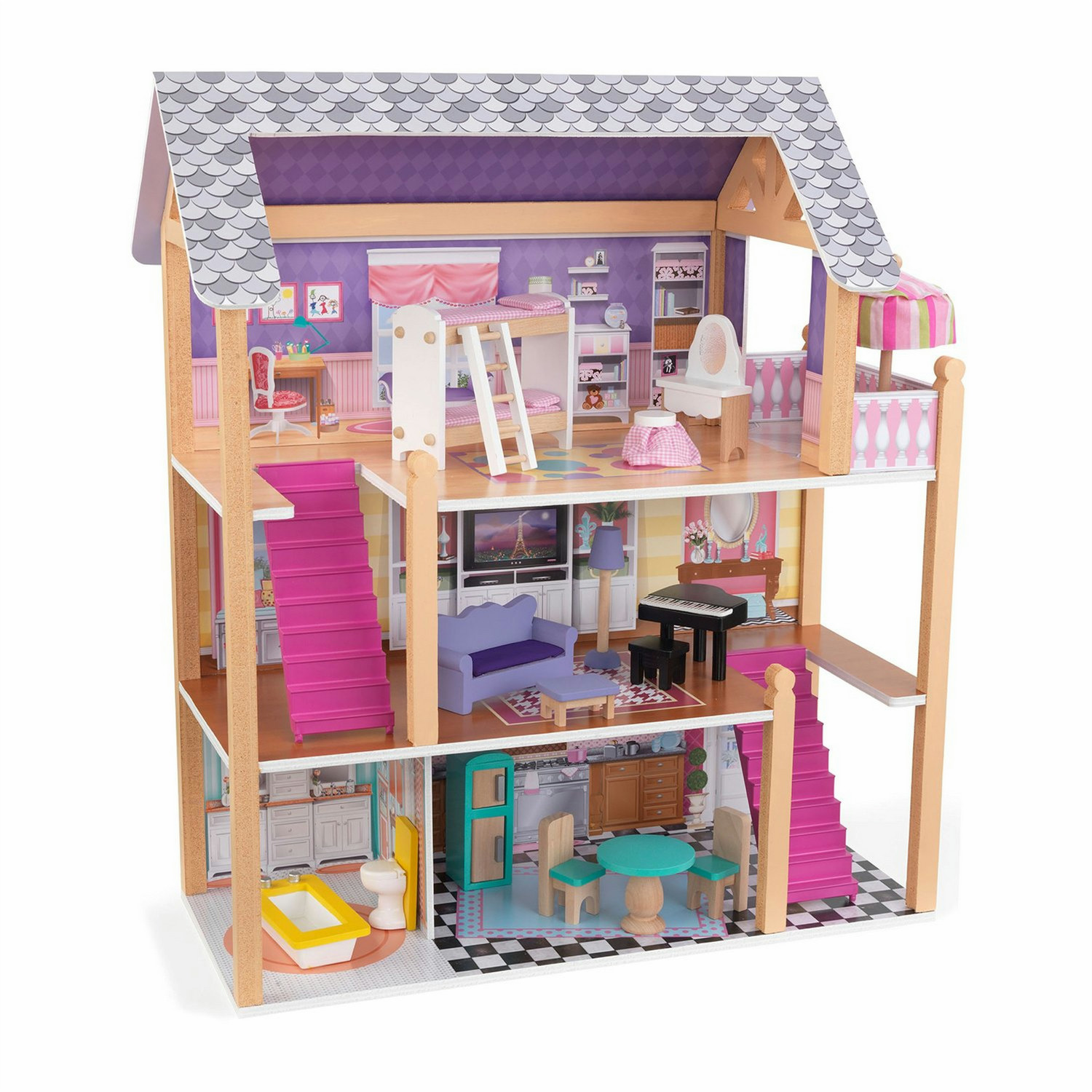 - This wooden dollhouse comes with 16 furniture pieces and was built to last for years and years