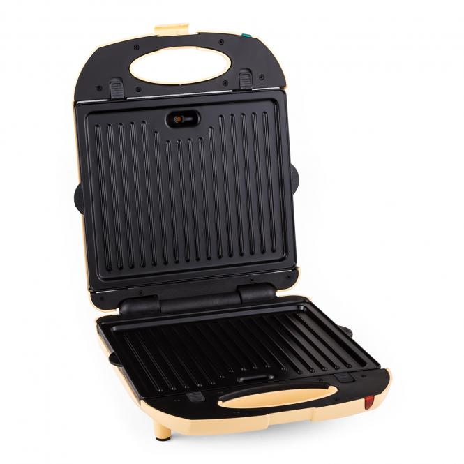 - 3 interchangeable hot plates with non-stick coating (Sandwich, Waffle, contact grill)