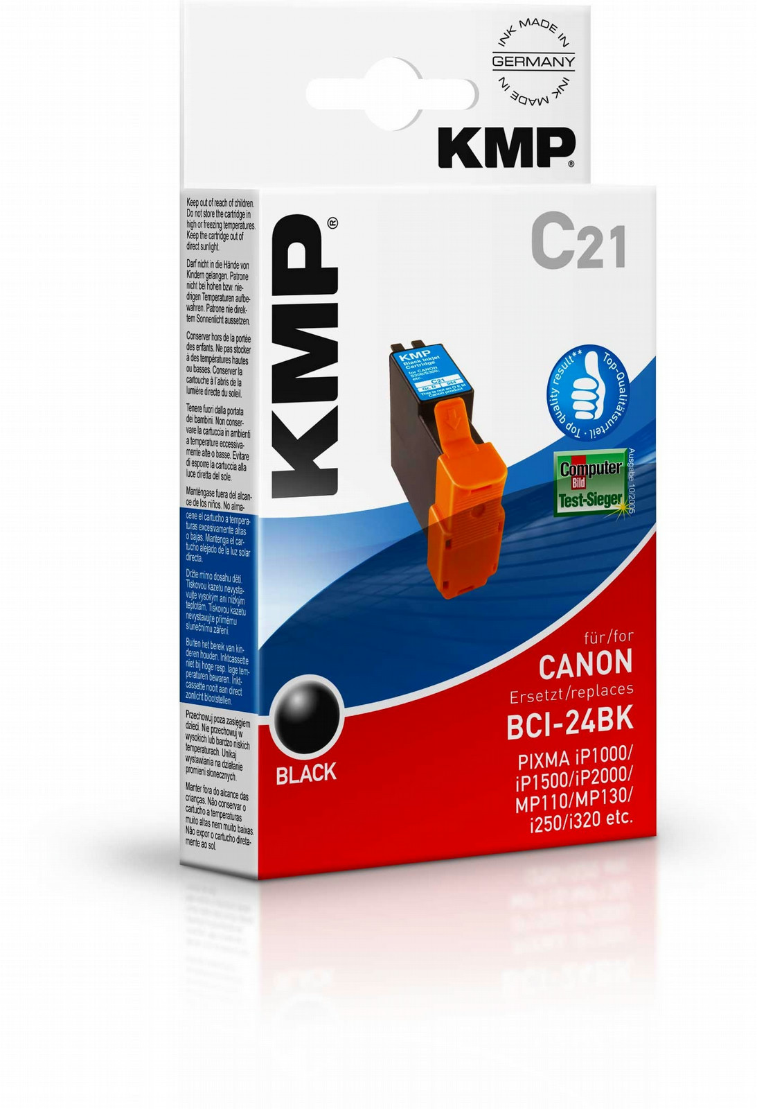 KMP C21. Printing colours: Black, Page yield footnote: ISO/IEC 24711, Compatible products: Canon BJ S 330, I 250, I 255, I 320, I 350, I 355, I 450, I 450 D, I 450 X, I 455, I 470 D, I 475 D,