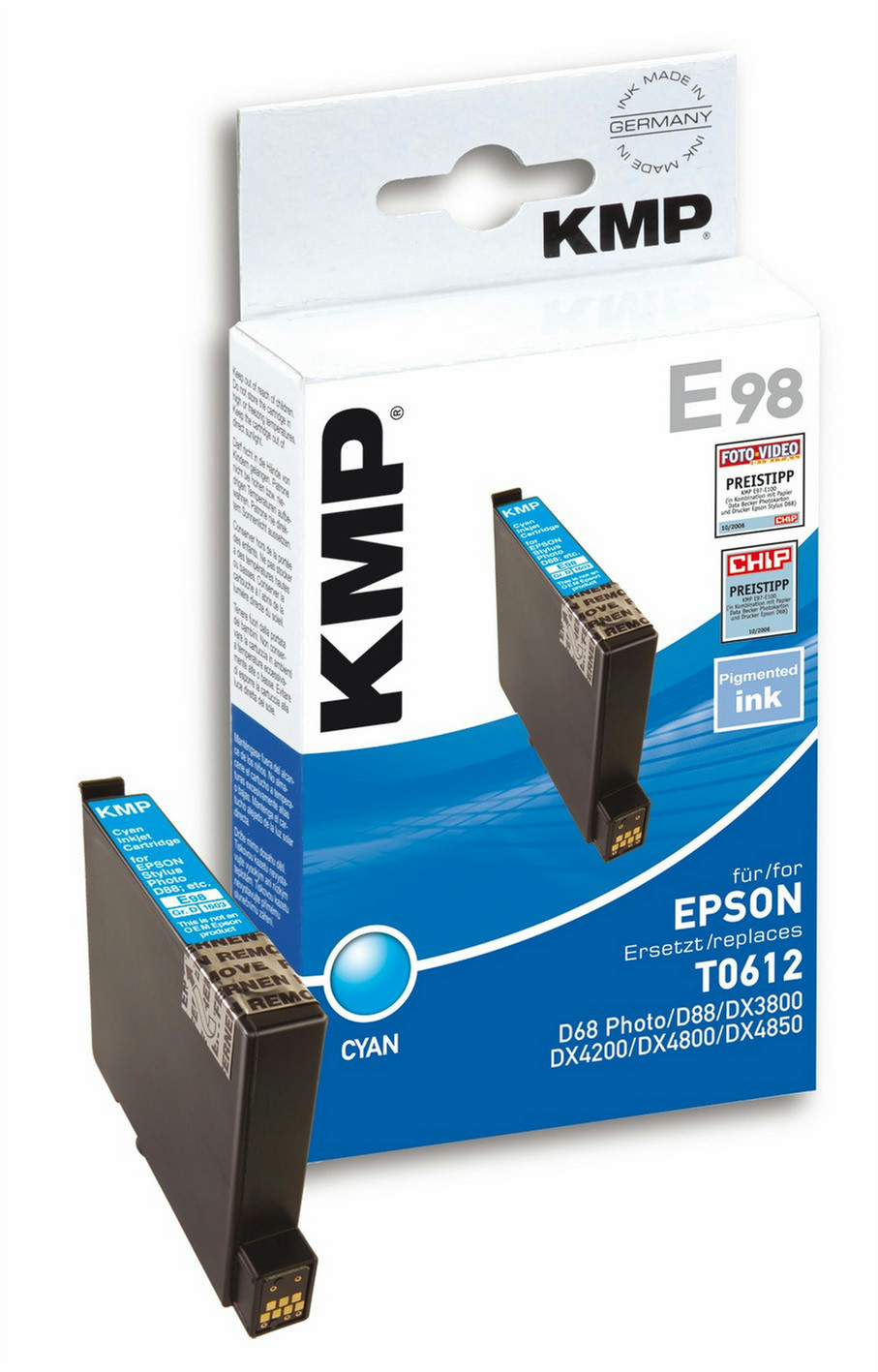 KMP E98. Printing colours: Cyan, Compatible products: Epson Stylus D 68 Epson Stylus D 68 PE Epson Stylus D 88 Epson Stylus D 88 PE Epson Stylus D 88 Plus, Print technology: Inkjet