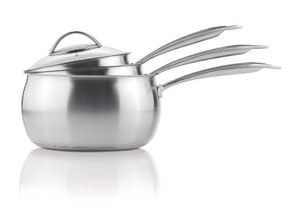 - Daily, the shapely stainless steel cookware can be stacked to save space