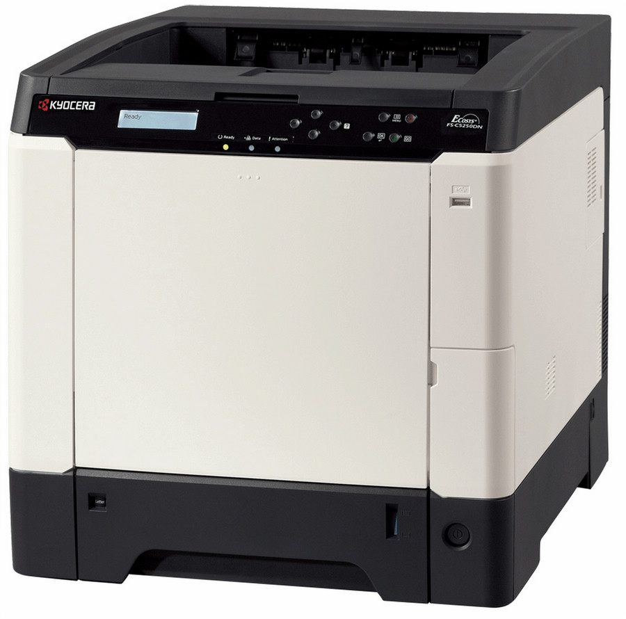 Incorporating ECOSYS technology for long life print consumables, low energy use and exceptional reliability, Kyocera’s FS-C5250DN Color Printer delivers 28 page per minute speeds (in color and black)and great color quality and reproduction to your important office documents. With the long life imaging drum, high yield toner and industry-leading maintenance intervals, your business can realize significant printing and operating costs that help your company’s bottom line. You get your documents quickly with fast warm up and first print times but without sacrificing energy efficiency. Standard networking lets you share and manage the printer efficiently. Standard 2-Sided duplex printing can cut your paper use significantly. You have flexibility for printing new types of documents on heavy or coated paper stocks from up to 5 multiple sized paper sources. Now you can reduce current printing costs and adding new capabilities to your office to do more printing in your office cost effectively and stop paying external suppliers. That adds up to real savings for your bottom line.