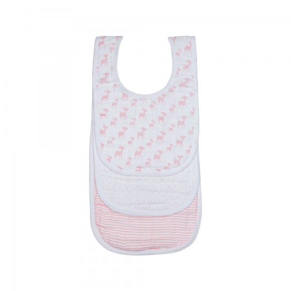The cute bibs offered in a 3-pack are made of 100 percent cotton. They are prewashed and the material is breathable. The bibs are available in classical blue and pink shades and with fresh and trendy patterns.