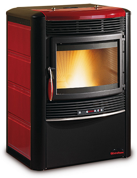 Majolica covering. Extractable cast iron hearth. Ash drawer. 750°C heat resisting ceramic glass.