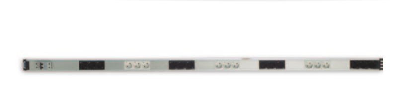 18xDIN49440 Socket Power Stripe – double circuit (9+9), aluminium housing, 2x16A cct breaker, 250vac, for 45U cabinet height, no cable, ready cable connection point