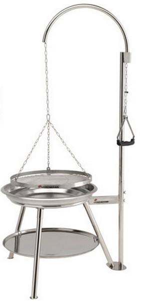 - Stainless steel design: firebowl, tripod construction, barbecue pipe elbow, stand, side table and cooking grill.