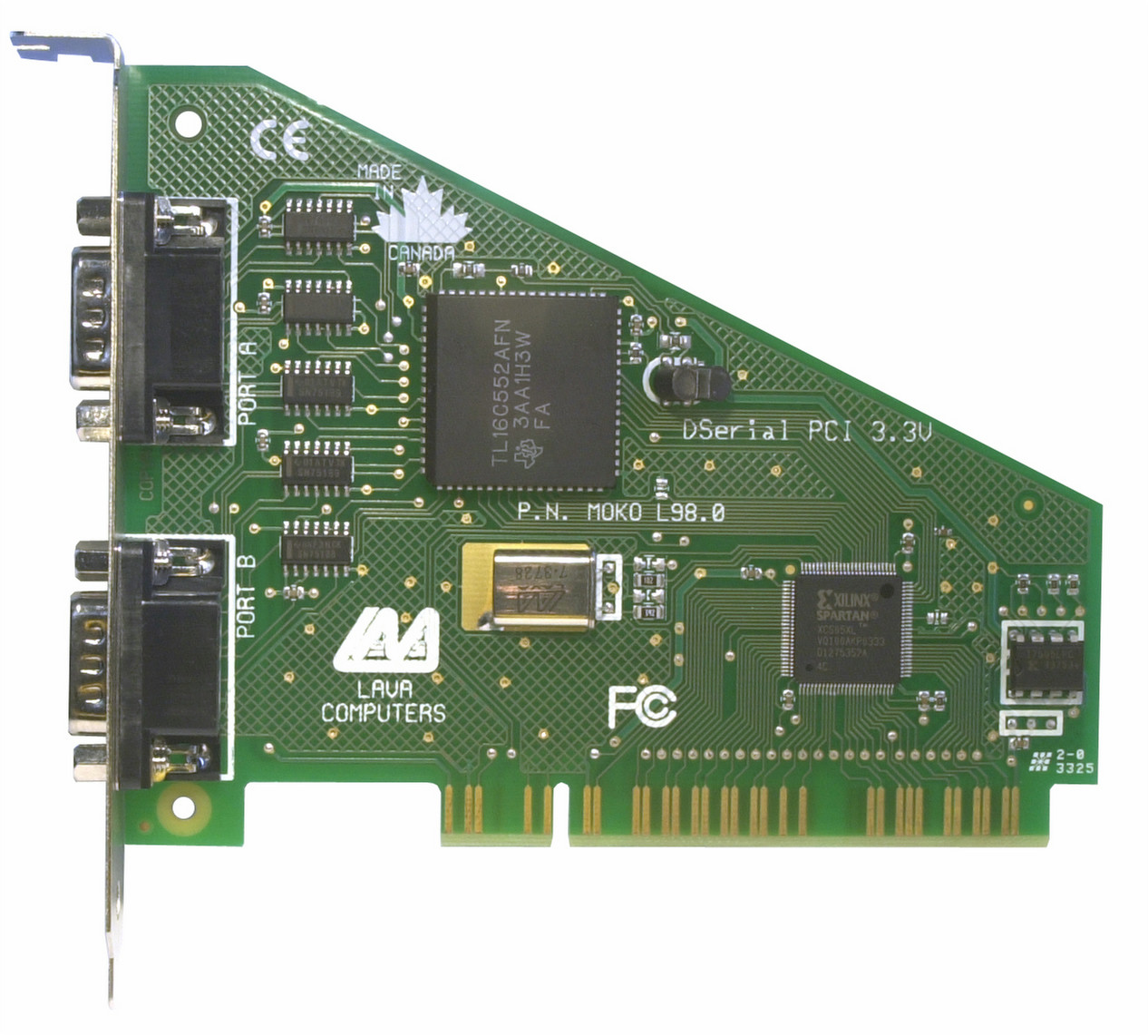 Few serial peripherals or PCs would not benefit from the DSerial-PCI 3.3 V’s speed and economical usage of PCI real estate, IRQs, and COM port resources. Connecting the LAVA DSerial-PCI 3.3v to external modems, serial printers, handhelds and PDAs, mice and trackballs, keypads, serial POS devices, digital cameras and more has never been easier!