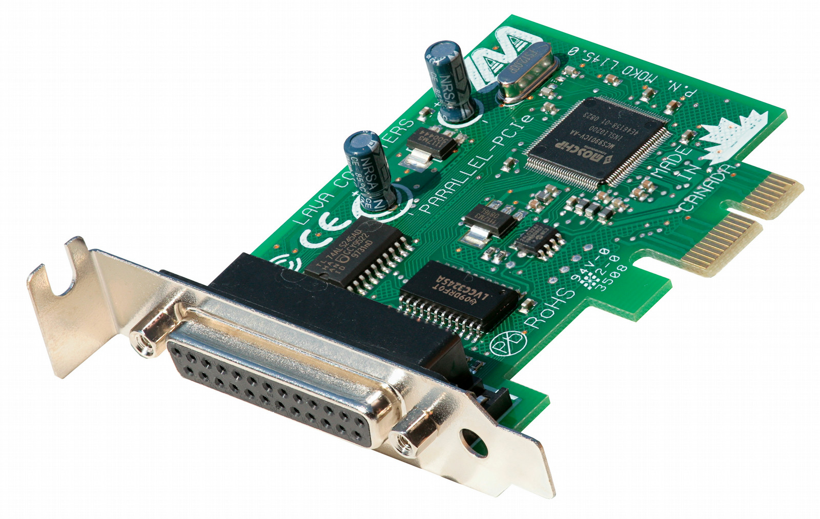 The LAVA Parallel-PCIe/LP is fully PCIe compliant and takes advantage of the speed and easy configuration of the PCIe bus. Users are no longer restricted to the three standard parallel port addresses: the Parallel-PCIe automatically selects a free address and IRQ during installation, virtually eliminating user error and resource conflicts.
