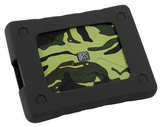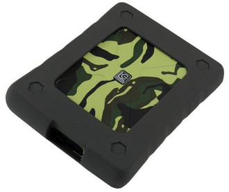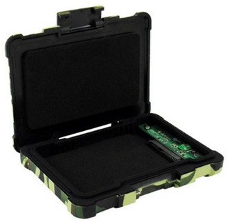 External USB 3.0 HDD enclosure, 6,35cm/2.5", SATA I/II/III HDD up to 6Gb/s, plastic / rubber, camouflage green