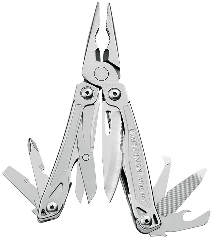 The Leatherman Wingman is just that: your go-to tool for projects around the house, on the job, or at the campsite. A great, lightweight, pocket-sized, stainless steel tool; the Wingman features an outside-accessible, one-hand opening blade and newly-designed spring-action jaws. With plenty of handy tools, and backed by a team of designers, assemblers, and manufacturing crew from Portland, Oregon, this is one amazing value. Covered by the Leatherman 25-year warranty.