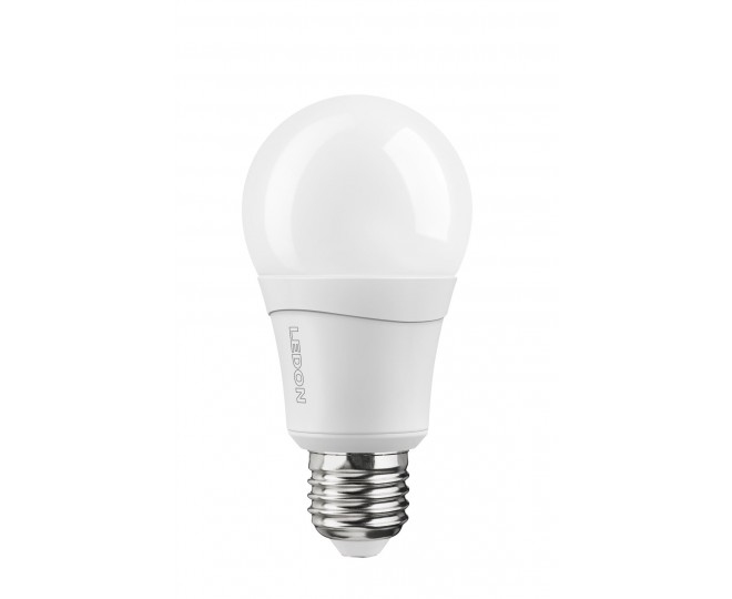 LEDON A60 10.5W E27. Light colour: Warm white, Colour of product: Stainless steel, White. Energy efficiency class: A+, Input frequency: 50/60, Energy consumption (1000 hours): 11 kWh. Diameter: 6 cm, Length: 12 cm, Weight: 138 g. Material: Metal, Plastic